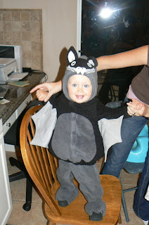 We took Dax trick or treating kind of, we went to like 2 houses where we knew the people, but other than that we just walked around the eighborhood. We decided it looked kinda silly for the 2 of us to carry our little bat to houses and ask for candy when he obviously had no idea what was going on. We had fun though.